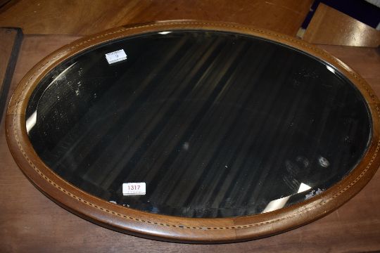 An Edwardian mahogany and inlaid oval wall mirror