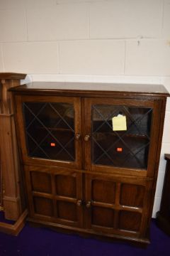 A vintage part oak bookcase with double cupboard under, width approx. 92cm, depth 32cm