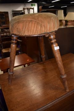 A 19th Century stained frame piano or similar stool on triple splay turned legs