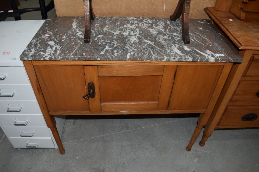 A Victorian stained frame wash stand having marble top, approx. 88 x 41cm