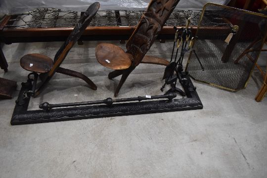 A cast fender, fire guard and companion set, internal dimensions of fender approx. 120cm x 30cm