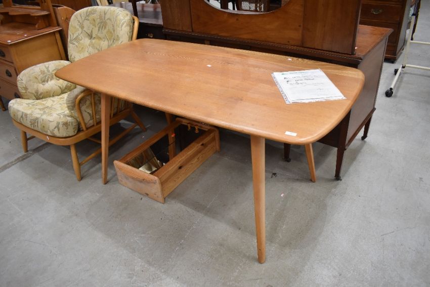 An Ercol light stain dining table, approx. 150 x 75cm, generally sound, a few light scratches and stains