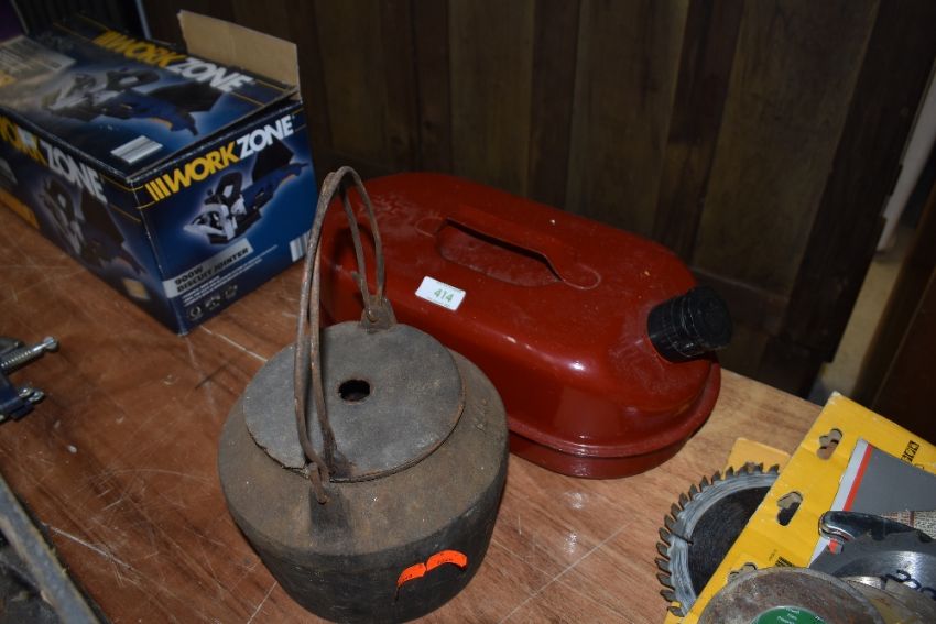 A genine vintage cast Swan veneer glue pot with inner and lid and petrol can