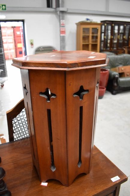 A Victorian gothic style octagonal plant stand, a few marks and stains to top