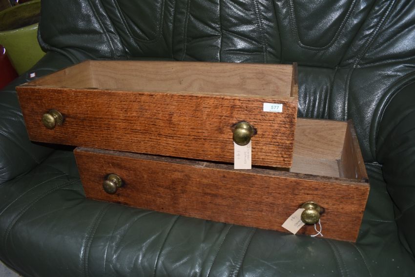 Two oak drawers with brass handles