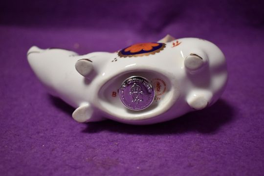A Royal Crown Derby paperweight Pig, with silver stopper