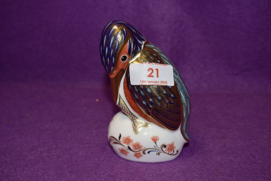 A Royal Crown Derby paperweight Kingfisher with a Gold stopper