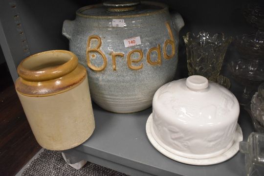 A selection of ceramics including cheese dome and bread container