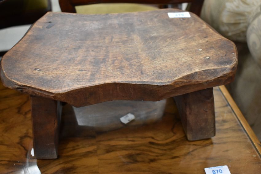 A rustic low footstool, stamped Wanderwood