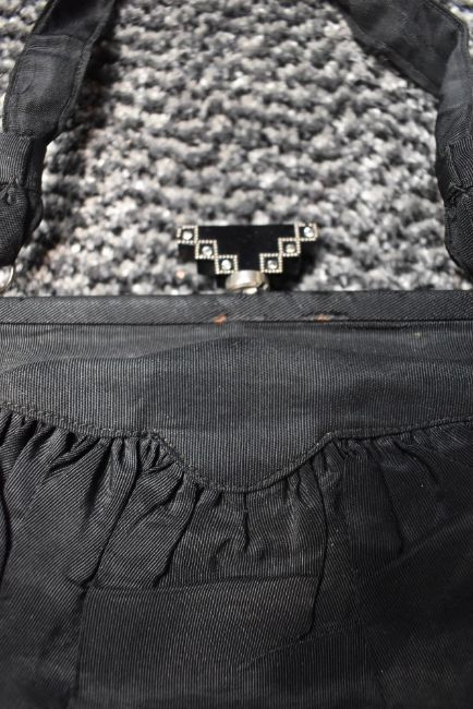 Three vintage evening bags and a late 19th/early 20tch century black gauze fan having spangles throughout.