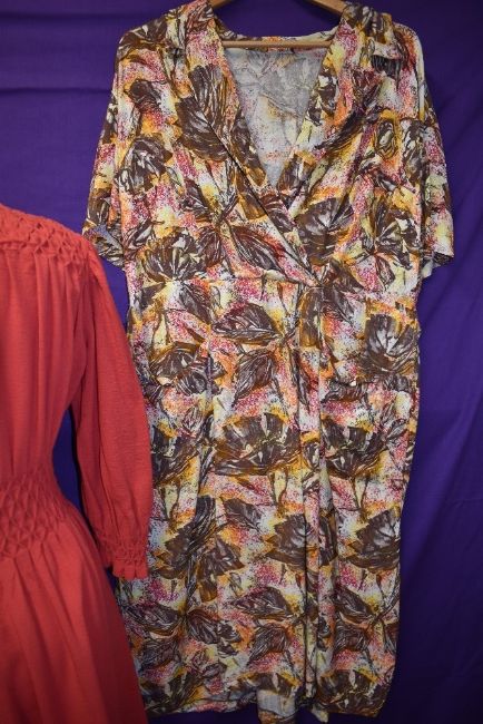 Pattered dress has a couple of small holes to the skirt and an alteration to side of skirt (possibly re seamed at later date?)