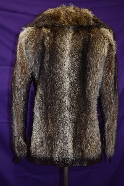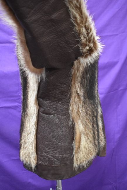 A ladies vintage fox fur jacket having leather panels to sides and sleeves,pockets to sides and zip front closure, small to medium size.