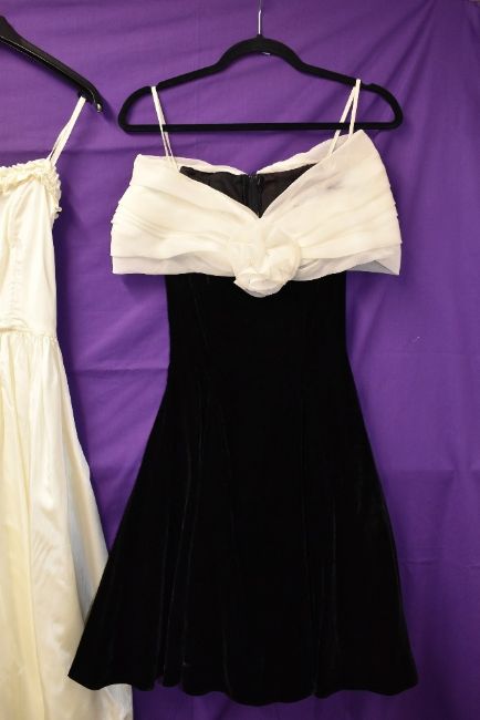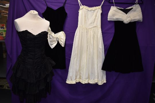 Four retro evening dresses,including Gunne Sax in black velvet,mainly 1980s,smaller sizes.