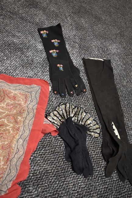 A collection of vintage gloves, handkerchiefs and scarves,including Liberty.