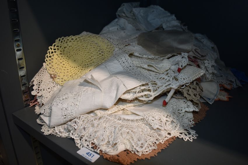 An extensive lot of vintage and antique mats and tray cloths,a lot of different techniques used throughout.