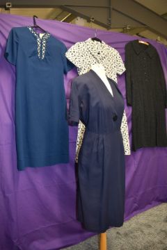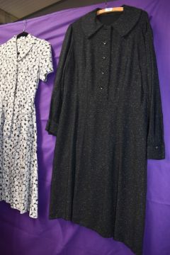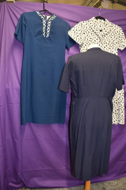 Four vintage 1950s and 60s dresses, various styles and fabrics, medium and larger sizes.