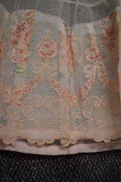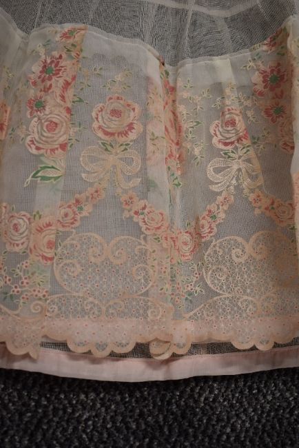 A collection of vintage petticoats one having beautiful flocked floral pattern and a long line black bra is also included.