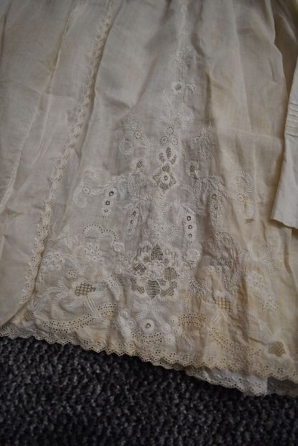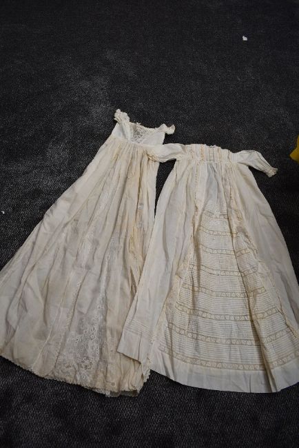 Two extensively embroidered christening gowns, with lace details throughout.some age staining.