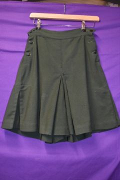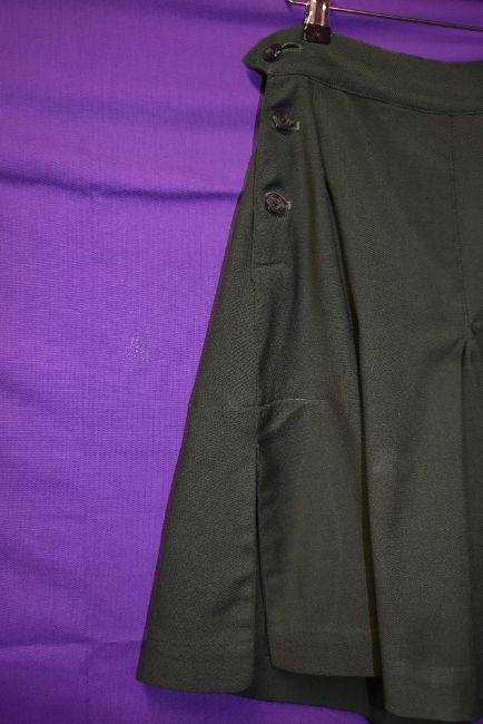 A pair of bottle green 1940s culottes/shorts, pleats to sides and button fastening to each.