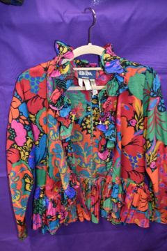 A collection of vintage and retro clothing,including A flamboyant Jean Muir blouse/top ,two Jaeger jackets, one Aquascutum jacket.