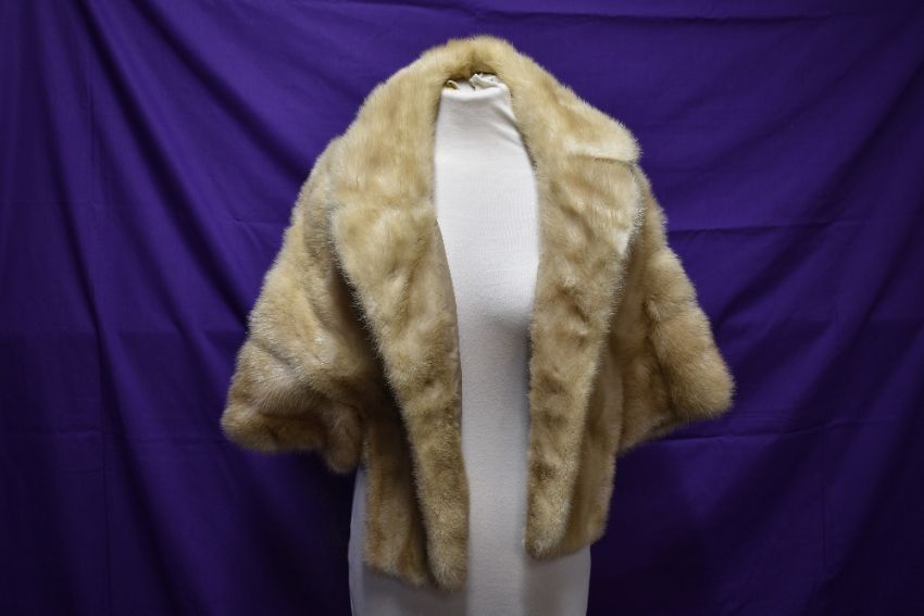 A blonde mink shrug with sleeves/jacket having F.M.R monogram to lining.