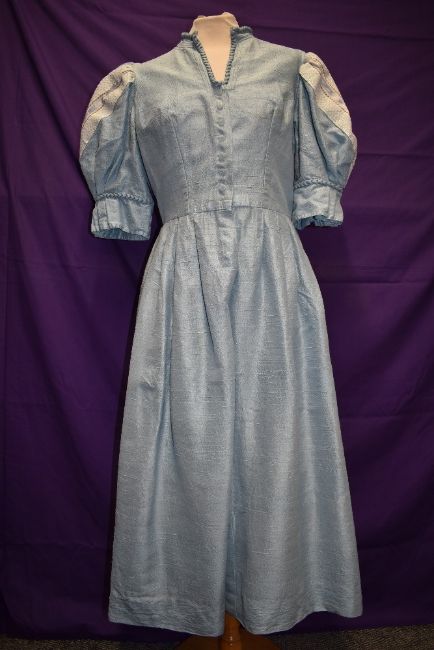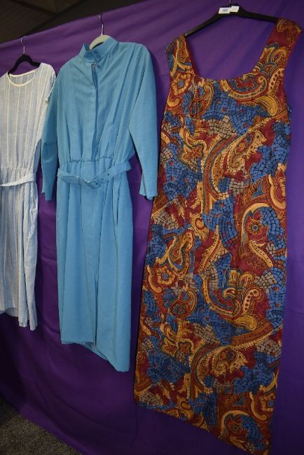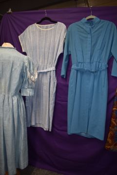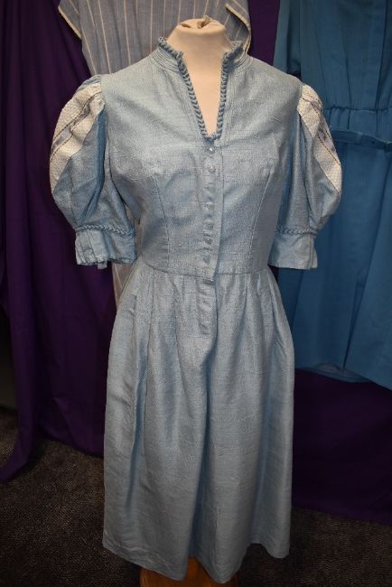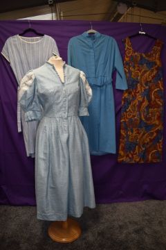 A mixture of vintage dresses,including unusual pale blue dirndl dress.