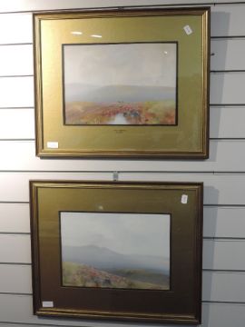 A pair of gouache paintings, A Moorland Stream, and Early Morning, signed, 24 x 34cm, framed and glazed