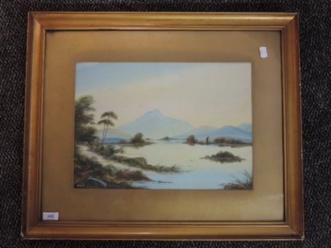 A gouache painting, Scottish loch scene, indistinctly signed, 29 x 40cm, framed and glazed