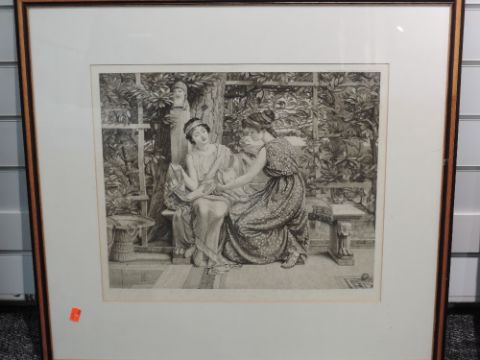 An etching, Edward John Poynter, Midsummer Night's Dream, Helena and Hermia, 1899, 40 x 48cm, framed and glazed