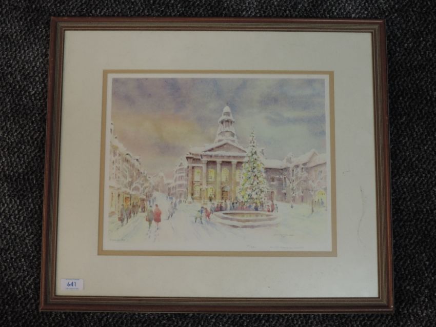 A ltd ed print, after Mario Ottenello, Lancaster Christmas, signed, numbered 129/350, 28 x 36cm, framed and glazed