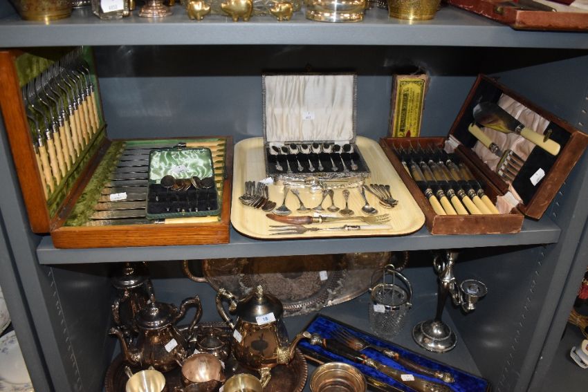 A variety of cutlery including canteen of fish knives and forks, sugar nips, boxed spoons and more.