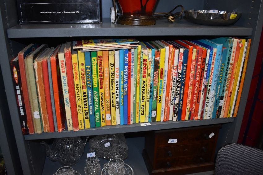 A selection of childrens comic and television annuals including Disneyland, Tiger, and Eagle