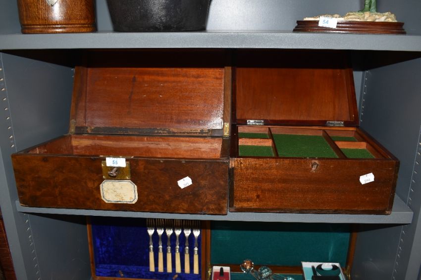 Two antique writer cases one having burr wood veneer and similar mahogany cased