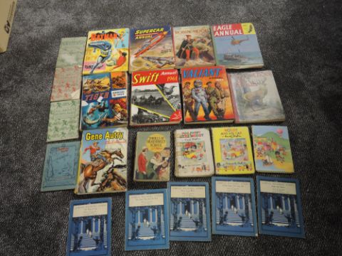 A selection of 1950's and later childrten's annuals and story books including 1955 Mickey Mouse, 1955 Tiger Tims, 1963 Beano Book, Topper, The Picture Book of Motors, Mary W.McClure All About Storyland books 1,2 & 3, Enid Blyton Noddy etc