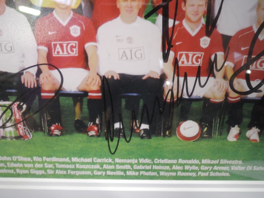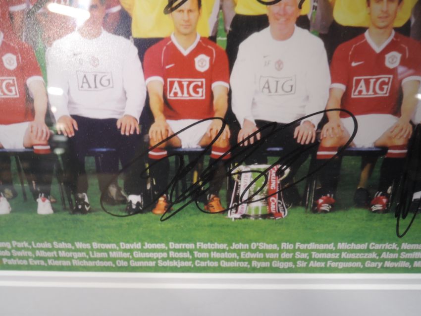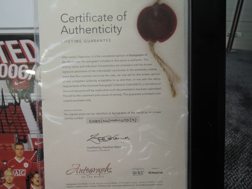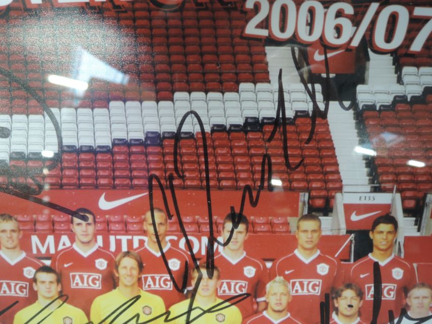 A framed print, Manchester United 2006/07 Squad, bearing several signatures with certificate of authenticity from Autographs of the World