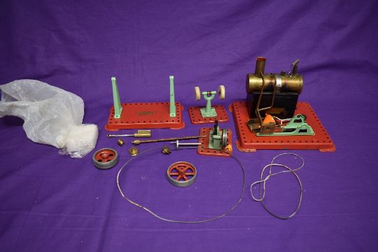 A Mamod live steam plant with brass boiler, polishing wheel and two other part accessories