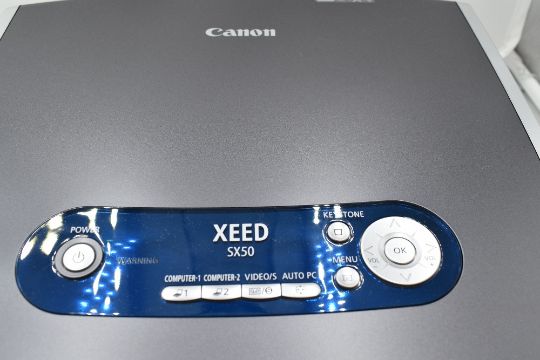 A Canon XEED SX50 multimedia projector with remote control in a Pelican 1600 hard case