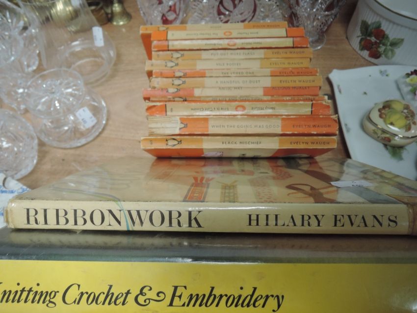 A selection of text and reference books including Penguin Fiction and Ribbon work