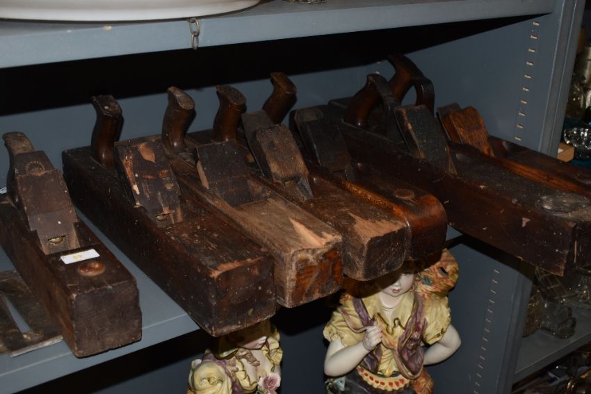 A selection of woodworkers beech wood jack planes including Varvill and sons of York