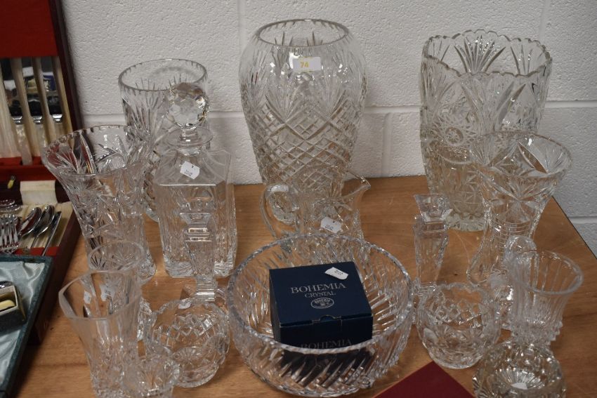 A selection of clear cut and crystal glass wares including Bohemian and similar