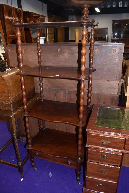 A Victorian mahogany whatnot etage, having four shaped tiers and drawer to base