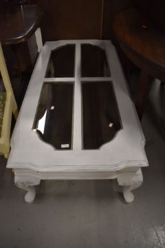 A modern painted coffee table, having smoked glass panels, approx137 x 67cm