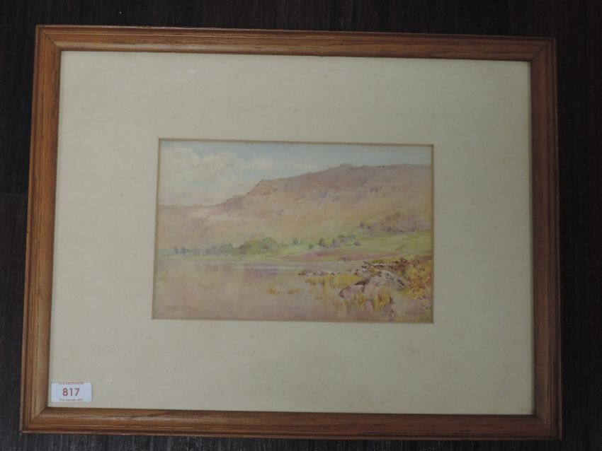 A watercolour, Cuthbert Rigby, Blea Tarn, Langdale, signed and attributed verso, 16 x 24cm, framed and glazed