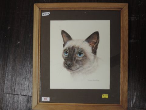 A watercolour. Monica Hartley, Siamese cat, signed, 30 x 27cm, framed and glazed