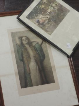 A print, after Max Nonnenbruch, kimono frau, Gustav Schauer, 30 x 17cm, framed and glazed, and a print, French bistro, 15 x 17cm, framed and glazed