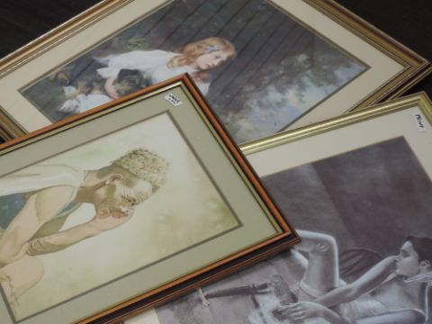 A watercolour, Hok Turvin, Nepalese man, indistinctly signed and dated (19)89, 36 x 26cm, framed and glazed, a re-print,after Symonds, Victorian girl, and a print after Yousef, Ballerina, 49 x 34cm, framed and glazed