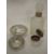 A small Edwardian silver candle holder of plain form having domed hinged lid, Birmingham 1908, Williams Birmingham Ltd, two matched HM silver trinket dishes having pierced oval decoration and gadrooned rims, and a cut glass decanter of small form having a glass stopper and HM silver collar