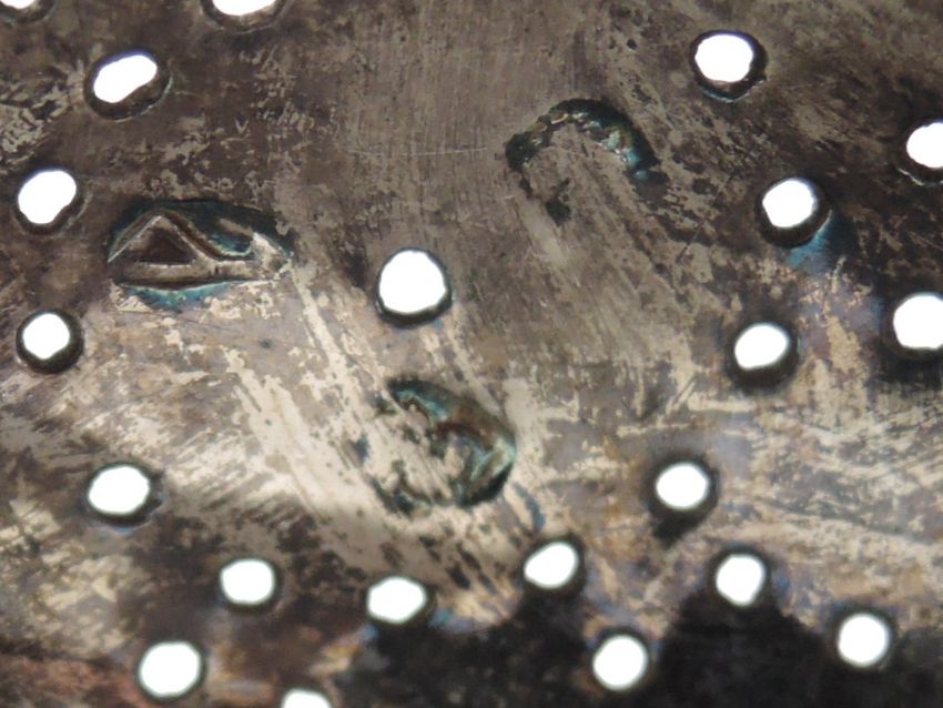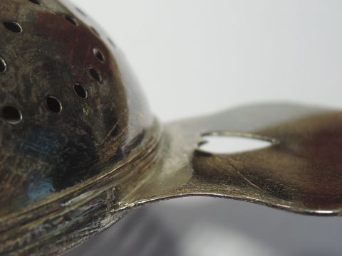 A Queen Anne Britannia silver lemon strainer having pierced bowl and heart cuts to the handles, London 1706, Joseph Bird, approx 57.4g