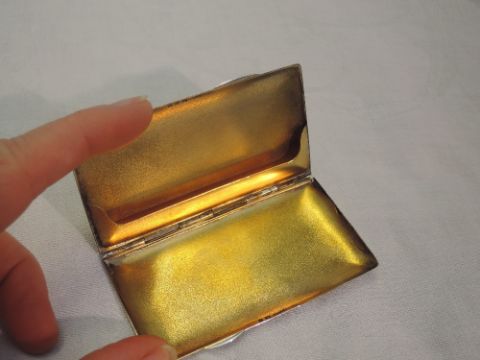 A silver card case of rectangular form having spring hinge, engine turned stripe decoration and gilt lining, London 1920, Sampson Mordan & Co
