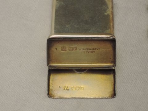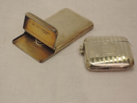 A Victorian silver card case of plain form having hinged flap lid and gilt interior bearing stamp S Mordan & Co, London 1900, Sampson Mordan & Co, and a silver vesta of square form having engine turned stripe decoration and plain cartouche, Birmingham 1912, Constantine & Floyd Ltd, approx 86g